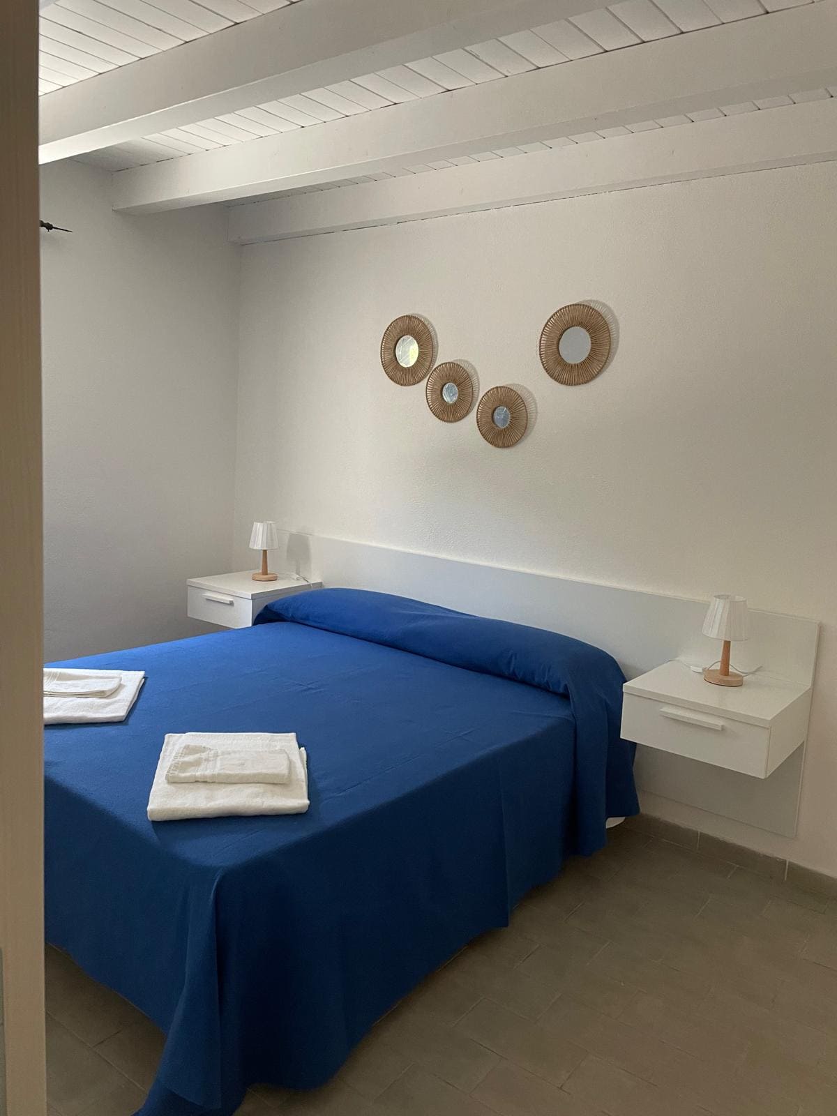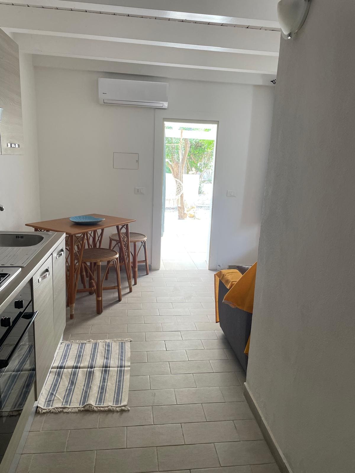Ingresso indipendente, una camera da letto, bagno con doccia, cucina completamente attrezzata con tutto il necessario, barbecue, lettini prendi sole.