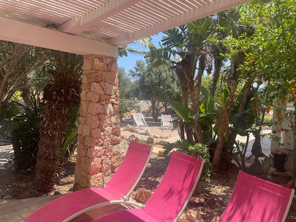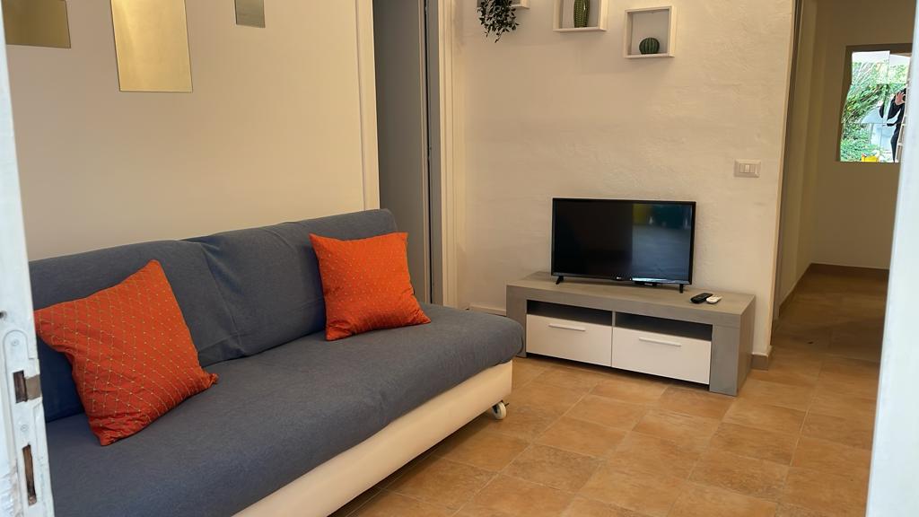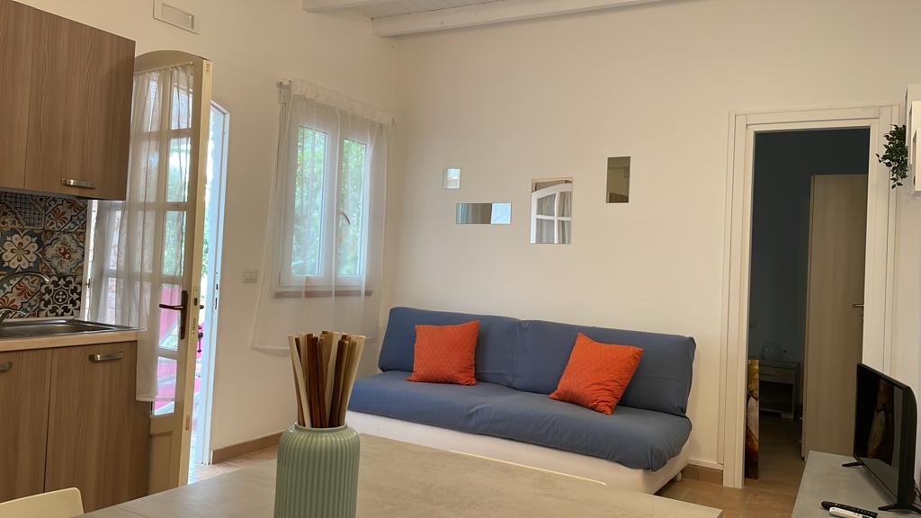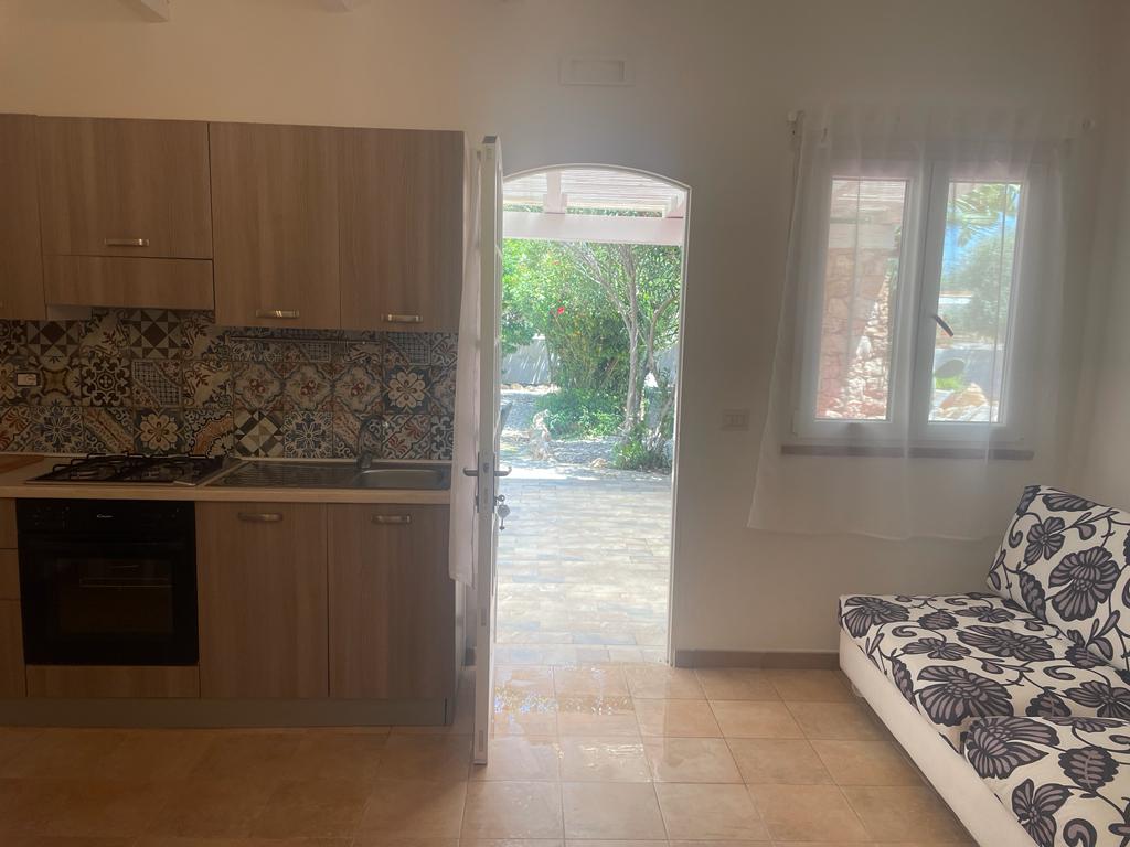 Cucina abitabile completamente attrezzata con tutto il necessario, ampio patio esterno con tavolo, sedie, barbecue, lettini prendi sole e giardino privato